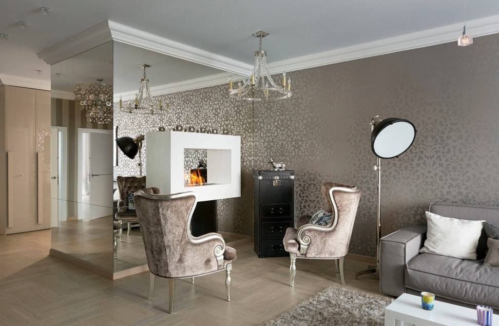 Определить функции гостиной. В определенных случаях гостиная исполняет функции других комнат: игровая, столовая, кабинет. Зал используют как спальню. Популярны квартиры-студии, где зал совмещен с кухней. В зависимости от расположения мебели и основных функциональных зон определяются количество и расположение источников освещения. Подобранный вариант должен обеспечивать освещением все уголки комнаты.
