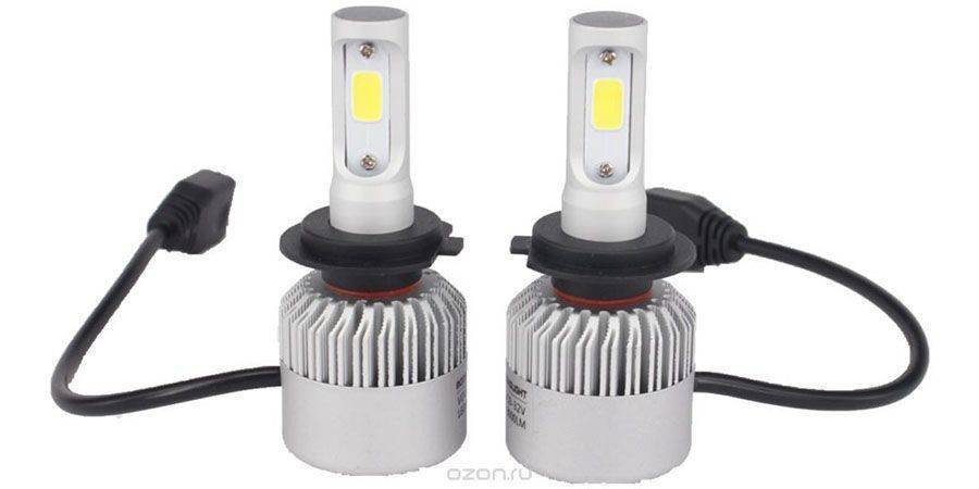 Современные светодиодные лампы имеют встроенный драйвер, который позволяет увеличить светимость в несколько раз. В связи с этим, показатели доходят до впечатляющих 4 тысяч люменов. Благодаря этому, LED вполне удачно конкурируют с ксеноновыми фарами. Конструкция предполагает наличие коннекторов «плюс» и «минус», поэтому при подключении необходимо соблюдать полярность.