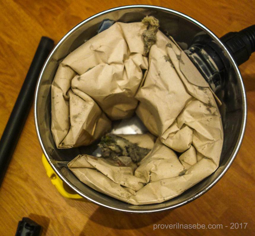 В данном случае я сам виноват в том, что мешок пришел в негодность. Я просто снял “голову” пылесоса, чтобы посмотреть, насколько емкость уже заполнена. А потом поставил “голову” на место. Похоже на то, что при установке патронный фильтр, стоящий на “голове”, прорвал своим корпусом заполненный мешок.
