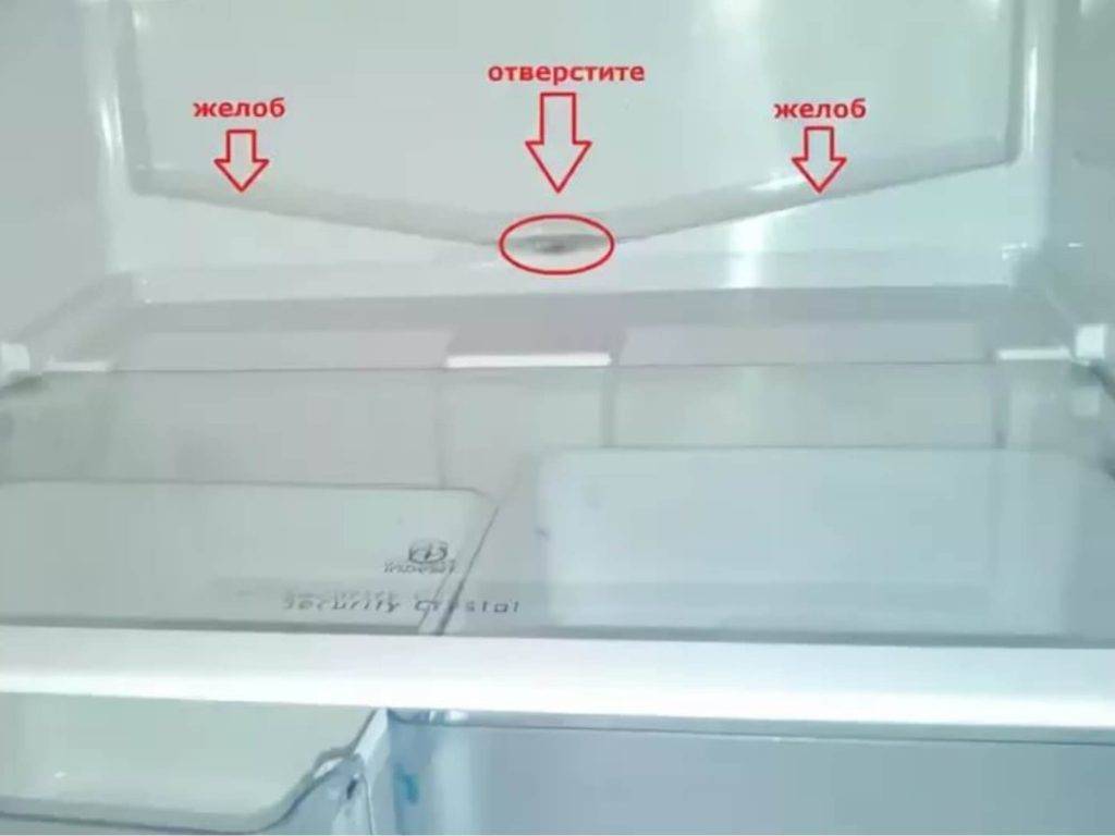 - Талая вода через дренажную систему отводится в специальный поддон. Образующиеся капли воды на стенке холодильника напоминают слезы.