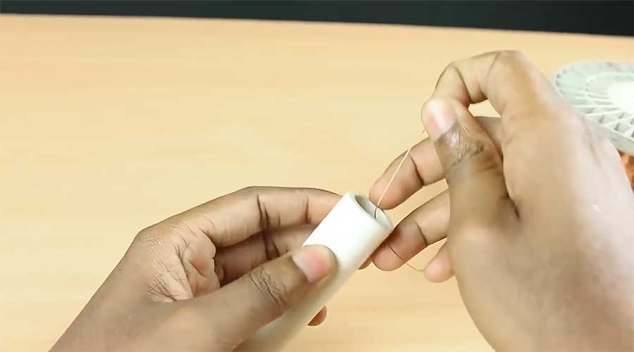 Проденьте проволоку в отверстие и закрепите с внутренней стороны с помощью капельки клея.