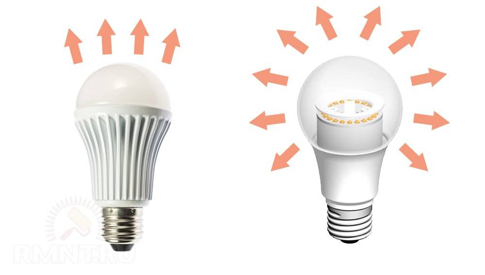 - пластиковая колба-рассеиватель «съедает» до 10% излучаемого света. Исключение составляют филаментные LED-лампы со стеклянной прозрачной колбой, в которых нет потерь на рассеивании.
