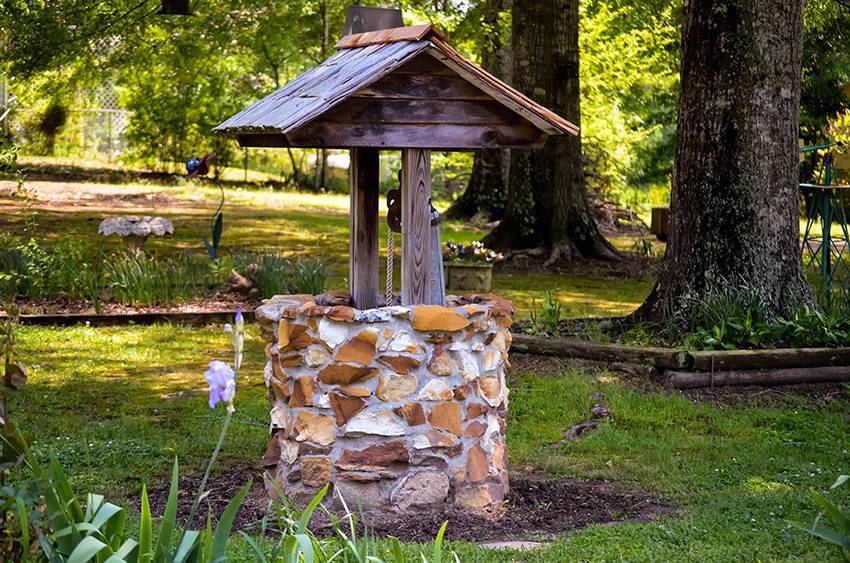 Оптимальная высота для данного сооружения составляет приблизительно 0,8-0,9 м, а минимальная – 60 см. Строить домик ниже последней величины попросту не имеет смысла, так как он будет вызывать неудобства при эксплуатации. Оголовок состоит из крышки, которая защищает воду в колодце, и подъемного механизма (для ведра). Последний может быть как ручным, так и автоматическим, что зависит от предпочтений хозяев участка.