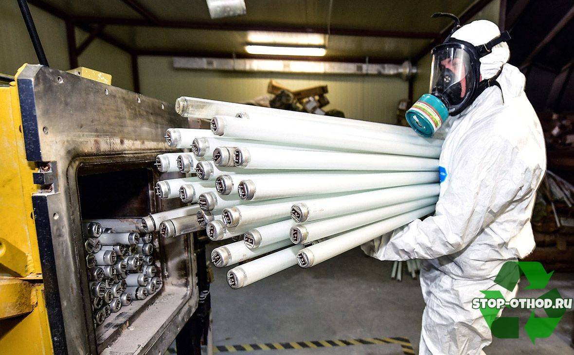Рассмотрим этапы утилизации люминесцентных ламп и оборудование, используемое в процессе.