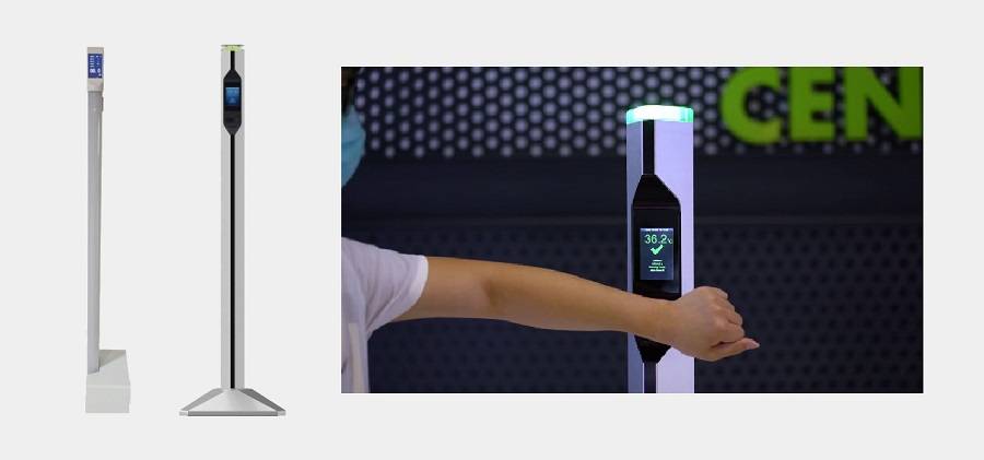 Данные устройства выполнены как стойка, на которой находится инфракрасный датчик, измеряющий температуру. Считывание данных проводится с запястья или лба человека на заданном производителем расстоянии. Одновременно с этим может проводиться идентификация человека по лицу (если термометр снабжен камерой с распознаванием лиц) и запись данных идентификации совместно с данными измерений температуры.