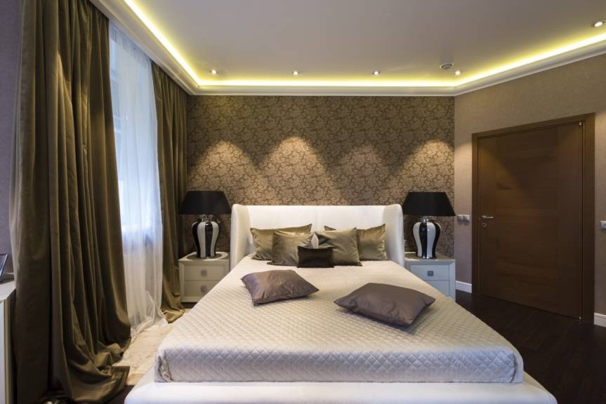 Оформление гостиничного номера со светодиодной лентой в потолке