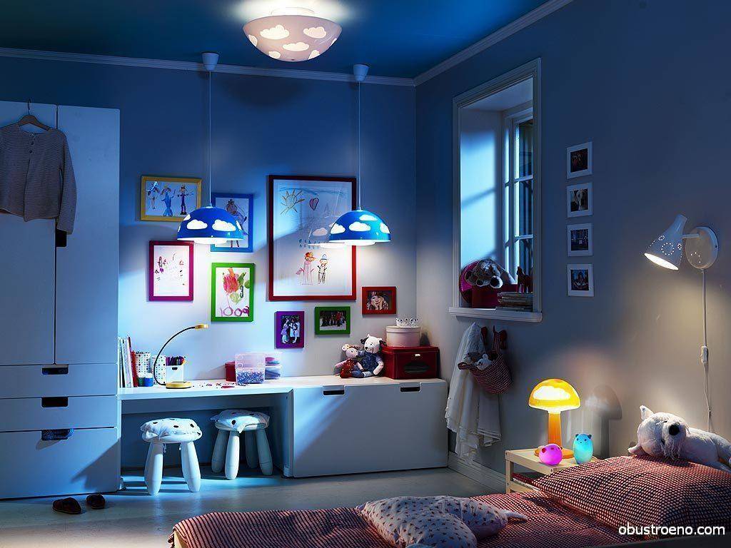 - В детских комнатах на первый план выходит вопрос безопасности и возможности получения равномерного освещения без теней. Выбирайте люстры из прочного пластика или толстого стекла.