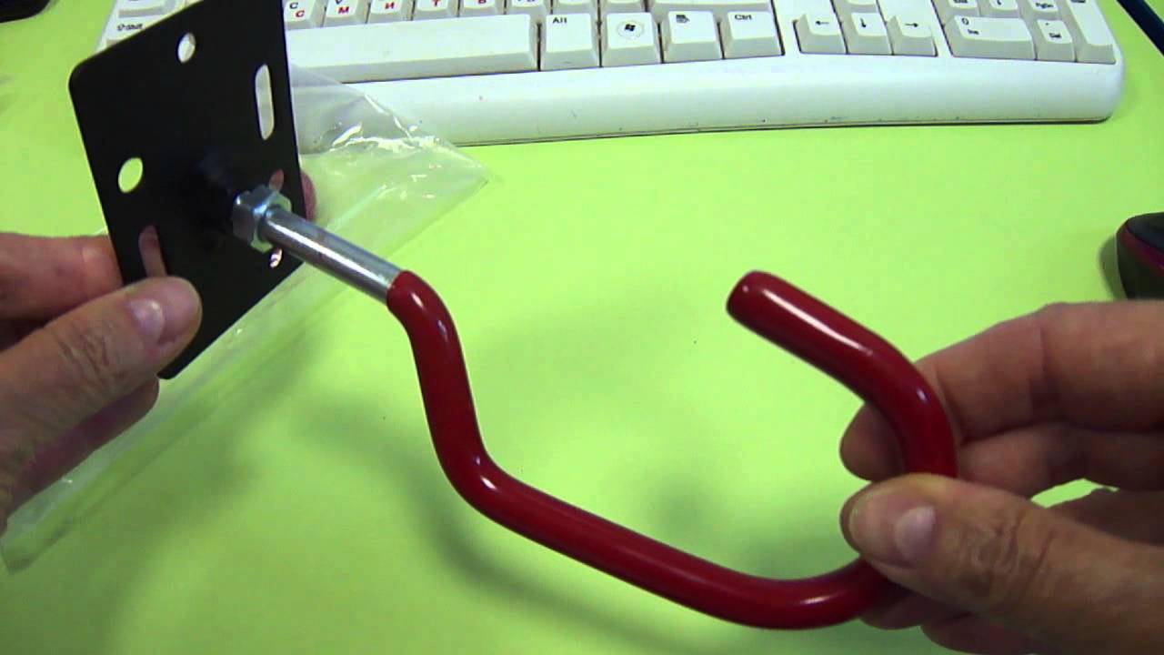 Простой, дешевый способ – 2 крючка соответствующей длины, прочности. Установить крючки нужно на расстоянии от стены, чтобы педали не царапали обои, краску. Перед завинчиванием крюков нужно убедиться, что выбранная стена имеет соответствующую грузоподъемность.Вешалки с рамой.