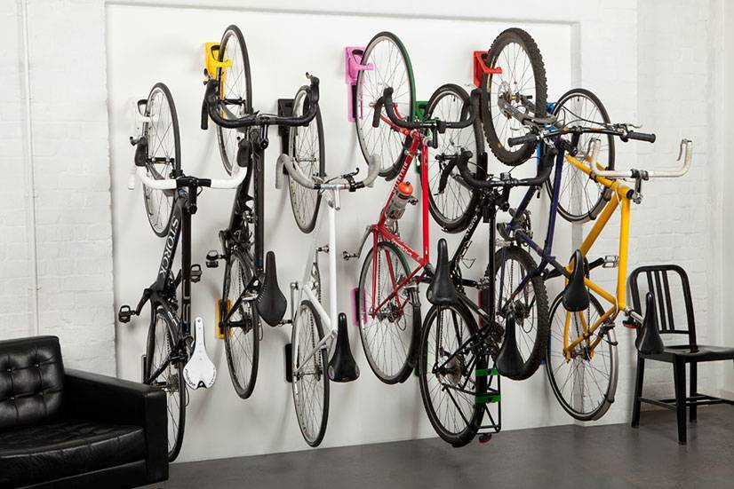 Преимущество вешалок – возможность складывания их после снятия велосипеда, экономия пространства.