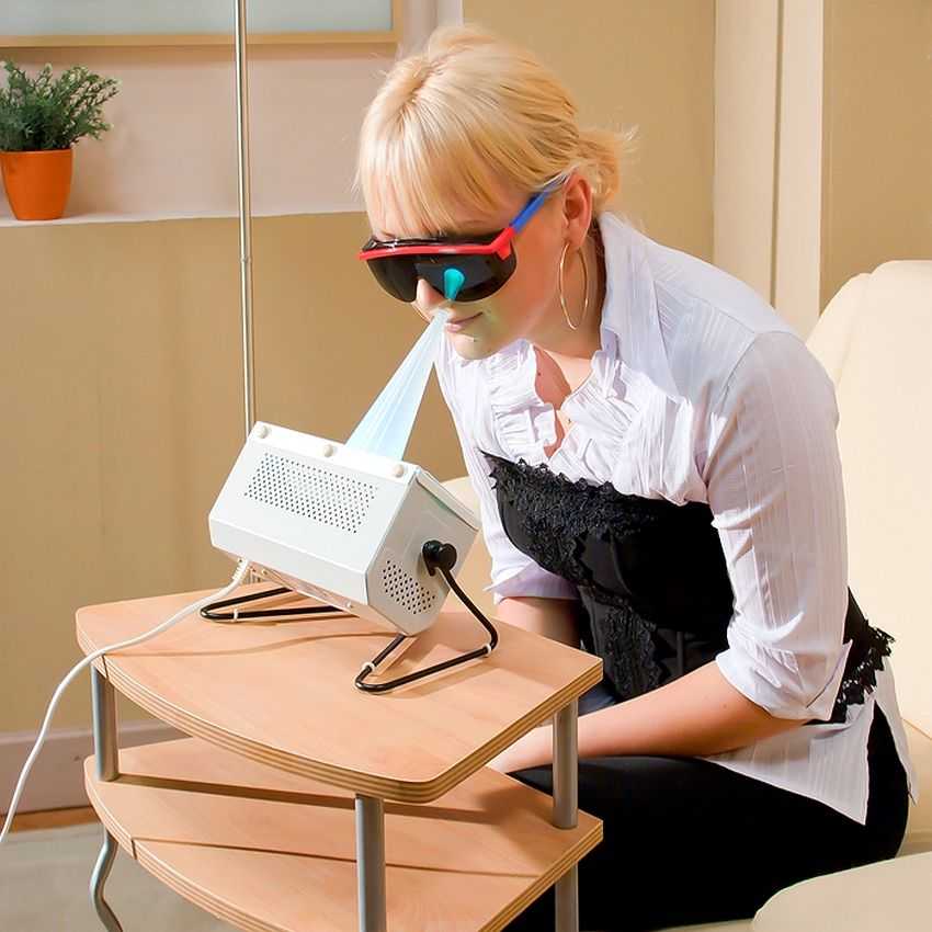 Для подобного облучения, как уже упоминалось, необходима обязательная консультация врача. К тому же применять для этой цели разрешается только маломощные приборы. Также обязательно применение специальных защитных очков.