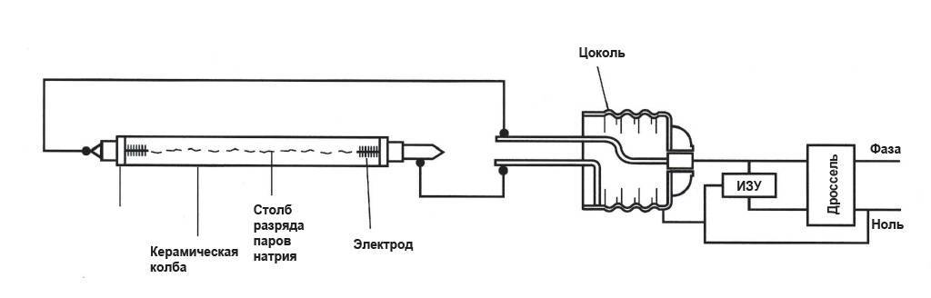 Натриевая лампа имеет простую конструкцию и несложный принцип.