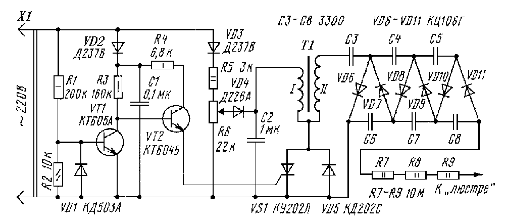 ФОТО: люстрачижевского.рфСхема электрического преобразователя для люстры Чижевского