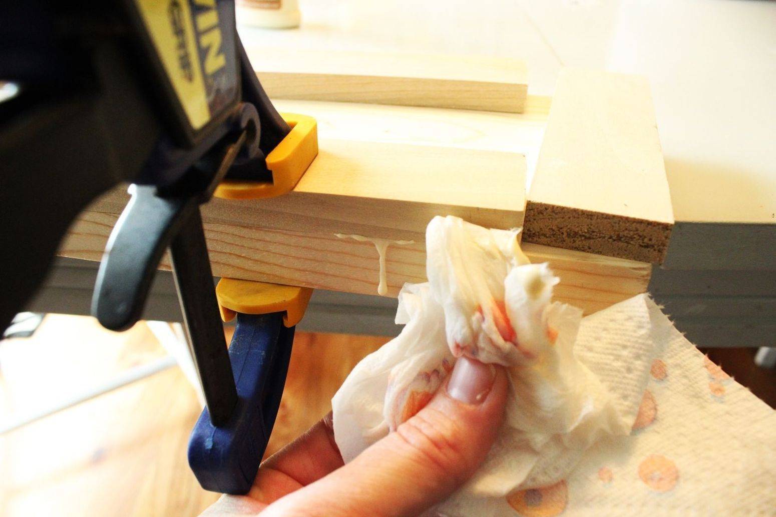 | Склеить каркас столярным клеем и сбить гвоздями каждый угол. | |