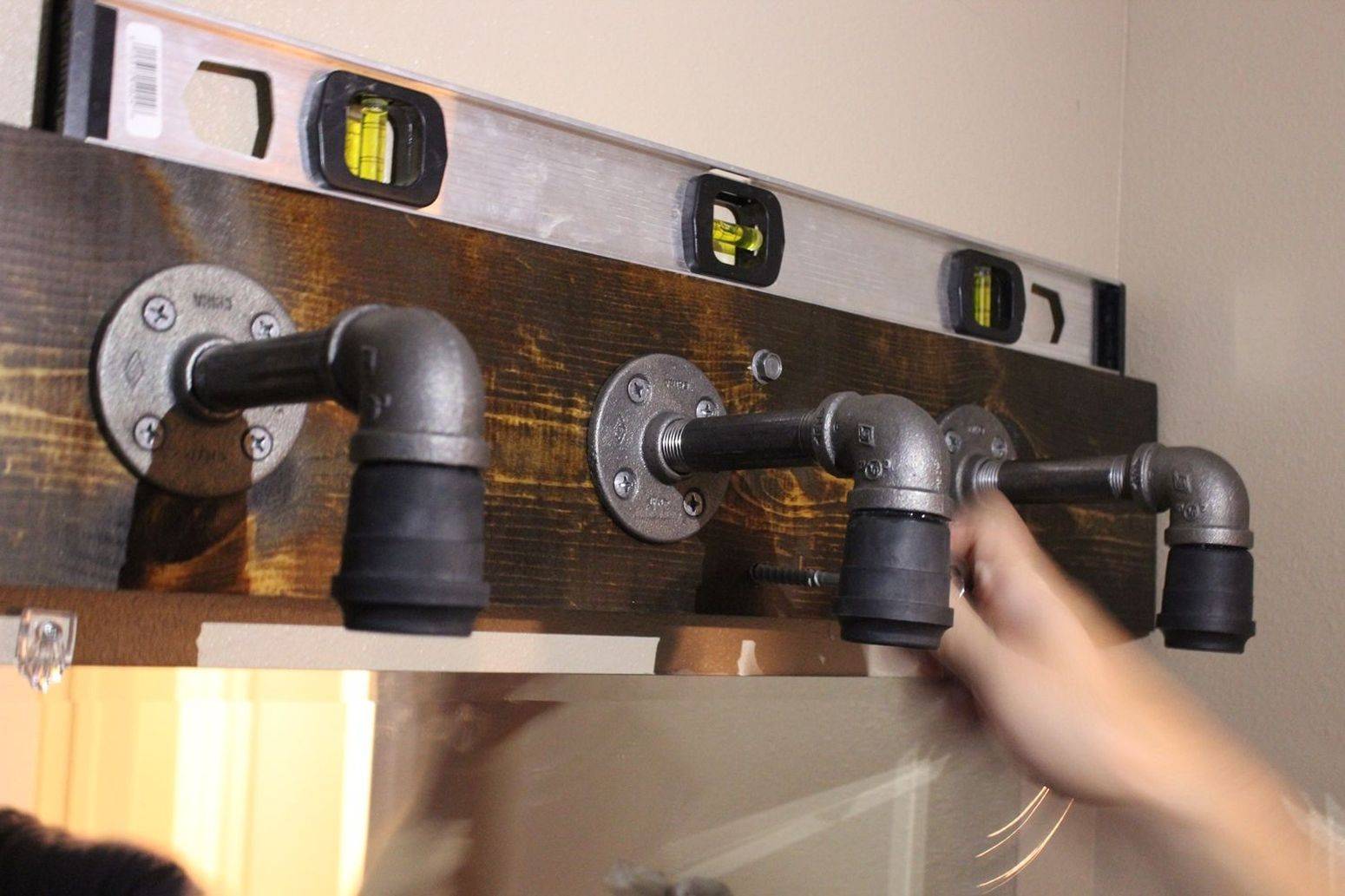 настенные светильники из фитингов и элементов труб устанавливают на основания из кирпича или бетона;