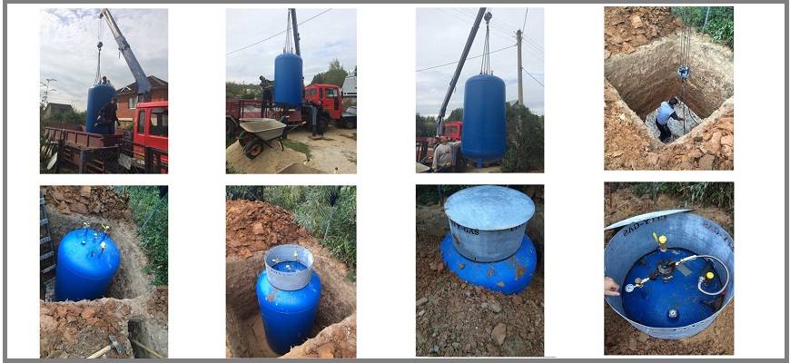 Установка подземного газгольдера производится в несколько этапов: