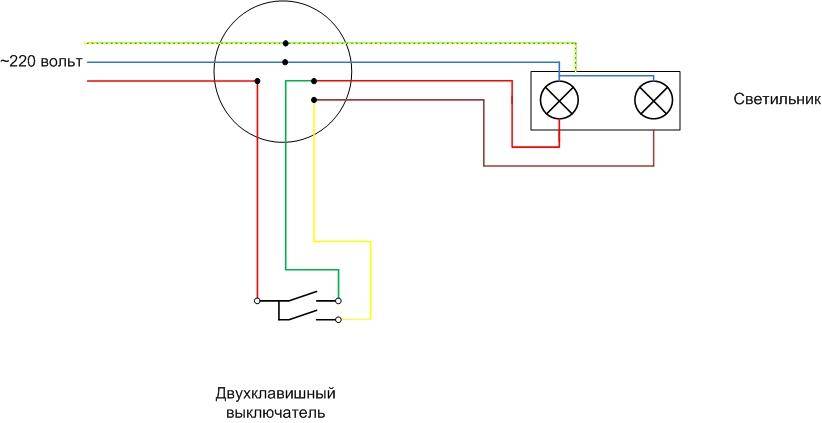 Схема подключения двухклавишного выключателя на две лампочки предусматривает, что в помещении уже смонтированы: