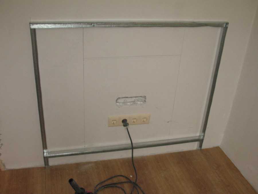 - Выпиливаете прямоугольное отверстие в гипсокартоне;