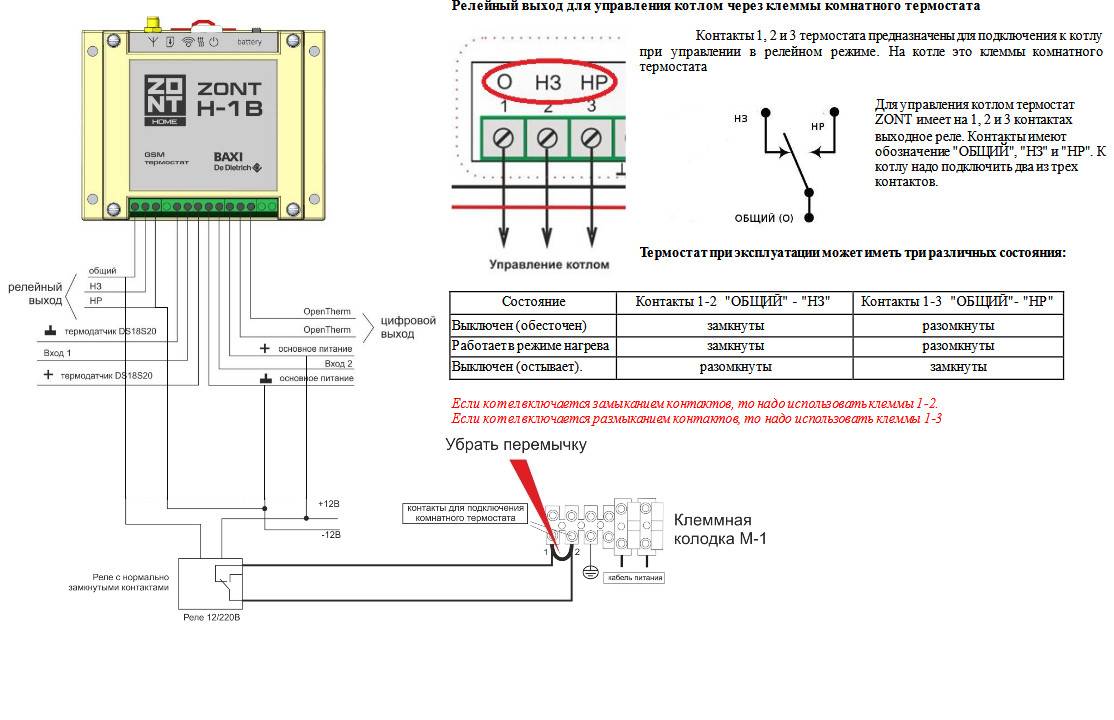 Схемы релейного подключения термостатов ZONT H-1, H-2, H-1V