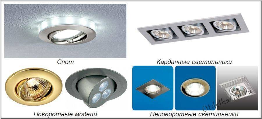 На данный момент существует несколько вариантов, применяемых для точечных светильников: