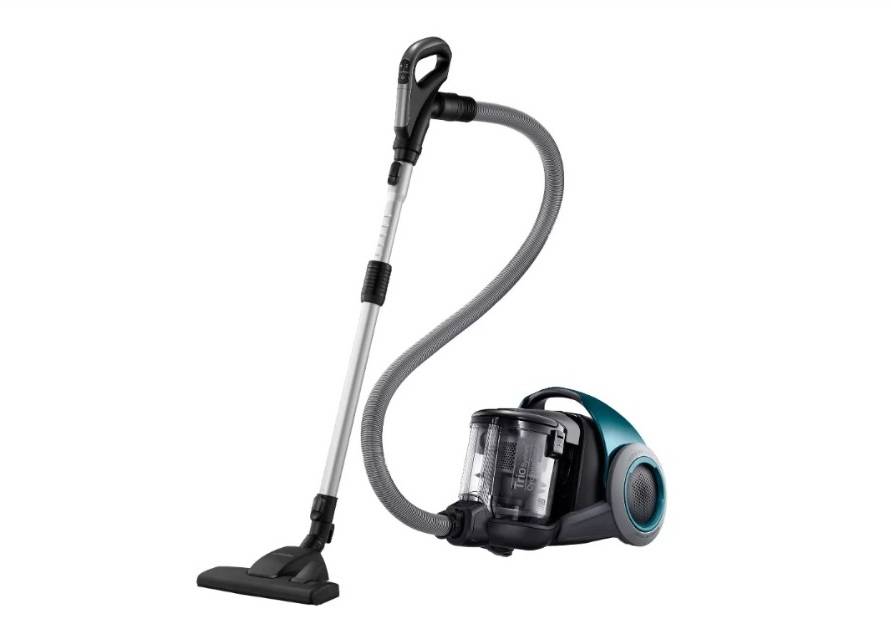 Недорогой пылесос Samsung с контейнером объемом 1.5 л вместо мешка. Выглядит стильно и современно, подходит для сухой уборки, радиус действия 9 м. Работает по циклонной технологии, легко очищается от собранной пыли.