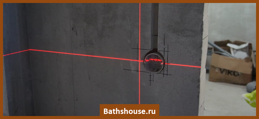 - Третий способ. Прочерчивают линию разметки с ориентиром на луч лазерного нивелира.