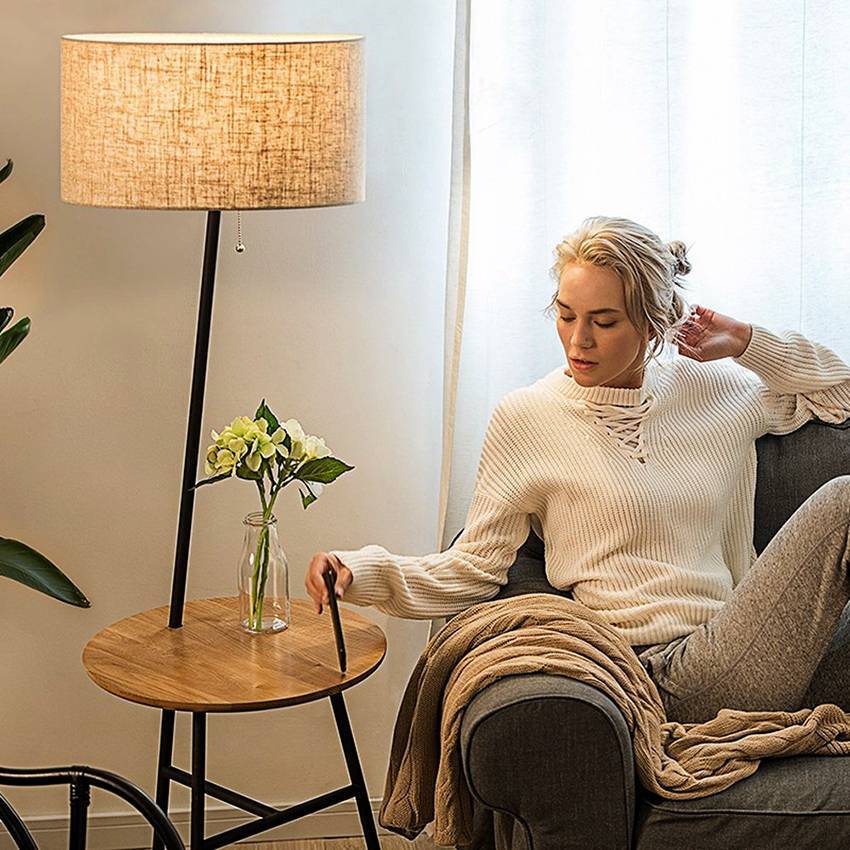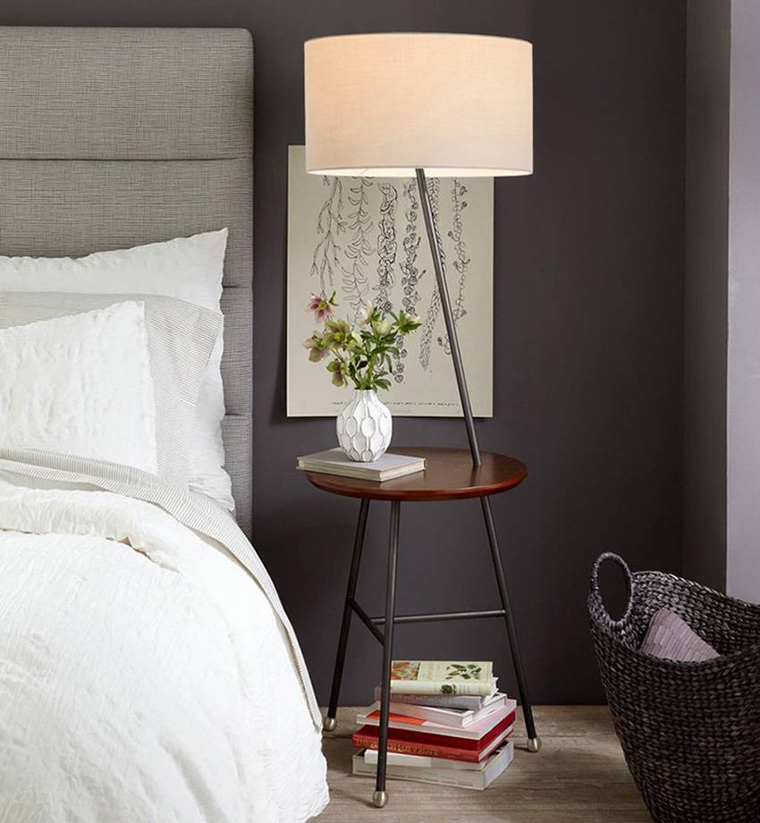 Торшер со столиком легко заменит прикроватную тумбу и светильник