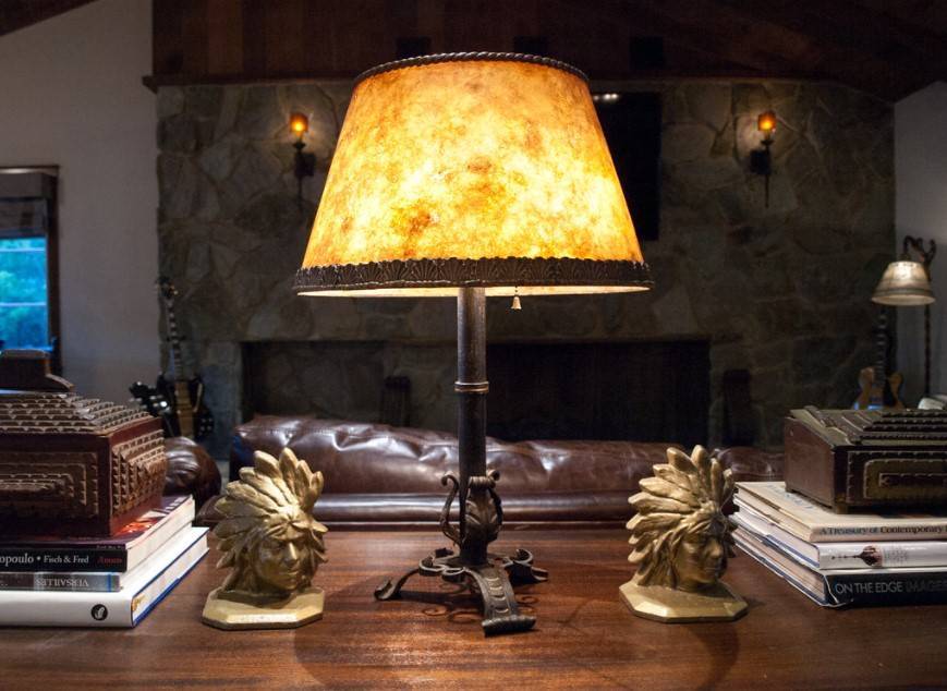 Лампа с необычным абажуром является оригинальным интерьерным акцентом