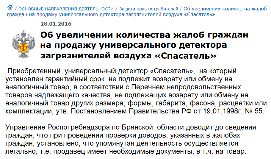 Вот выдержка из разъяснений, данных по этому поводу Управлением Роспотребнадзора по Брянской области в январе 2016 года: