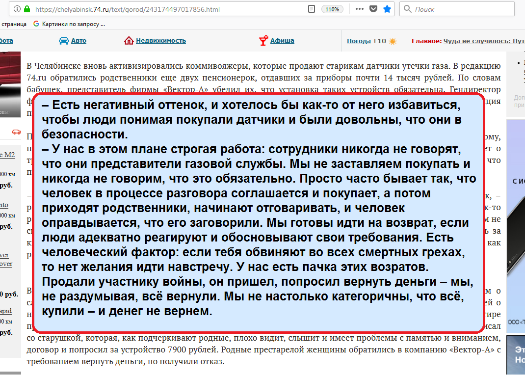 Так например, господин А. Фахрисламов, генеральный директор печально известного в Челябинске ООО “Вектор-А”, так объясняет “работу” своей компании: