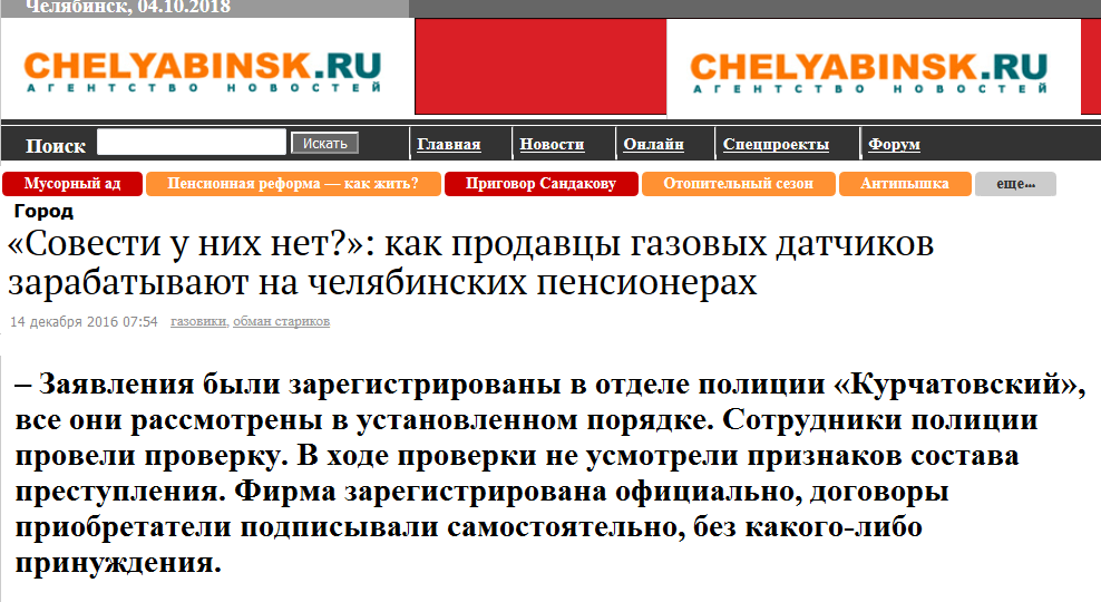 В последнее время, в связи с большим количеством взрывов и пожаров, участились случаи обмана. Нередко под видом сотрудников газовой службы или МЧС мошенники вынуждают жильцов заключать соответствующие договора и устанавливать датчики по завышенным ценам, включая баснословную оплату установки и подключения. Особенно активно аферисты действуют в отношении одиноких стариков.
