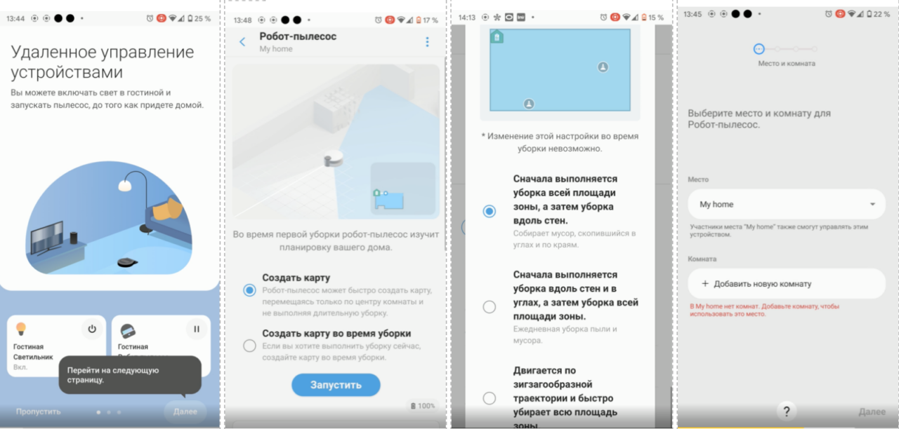 Теперь установим фирменное приложение SmartThings и заценим функционал робота. Процесс установки традиционный: регистрируем аккаунт, сканируем QR-код, вводим стартовые параметры, подключаемся к домашней сети и придумываем имя для нашего пылесоса, после чего приложением можно полноценно пользоваться. У меня установка заняла 7 минут и не вызвала никаких затруднений.