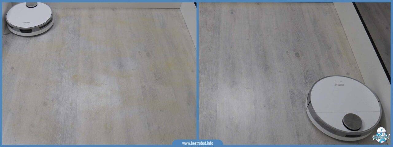 На тонком ковре у робота засбоила навигация: он решил объехать основные кучки мусора и сделал уборку выборочно. Результат соответственный – только 77%.