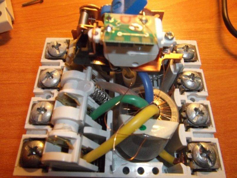 Устройство включает в свой состав минимум одно реле с перекидным контактом. Через него происходит либо управление магнитным пускателем, либо подключенной нагрузкой напрямую. Прямое управление возможно, если ток нагрузки не превышает величины, указанной в паспорте устройства (максимальный ток контактной системы).