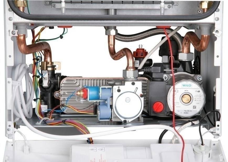 Также в конструкции предусмотрен трехходовый клапан, его задача заключается в предотвращении попадания воды во вторичный теплообменник. Вторичный теплообменник необходим для нагрева воды для бытовых нужд. Нагретая жидкость для отопительного контура выходит из устройства сквозь подающую отопительную линию, а остывшая жидкость поступает через обратную отопительную магистраль.