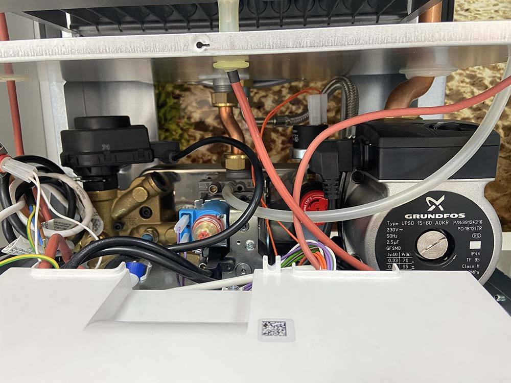 - осмотреть ограничитель температуры теплообменника устройства и убедиться, что жила цела, при необходимости – заменить провод или зачистить его, плотно присоединив обратно;
