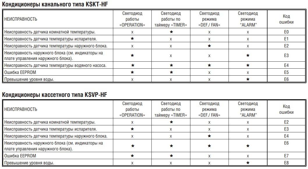А вот у канальных, кассетных и напольных (колонных) моделей предусмотрены коды ошибок, которые помогают определить причину поломки.