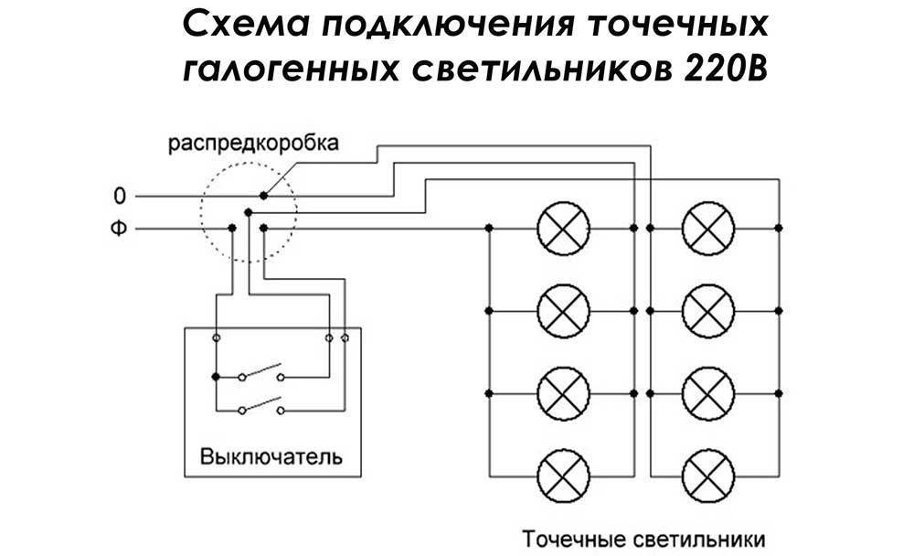 В такой схеме рекомендуем использовать светодиодные точечные светильники, они обладают отличными характеристиками.