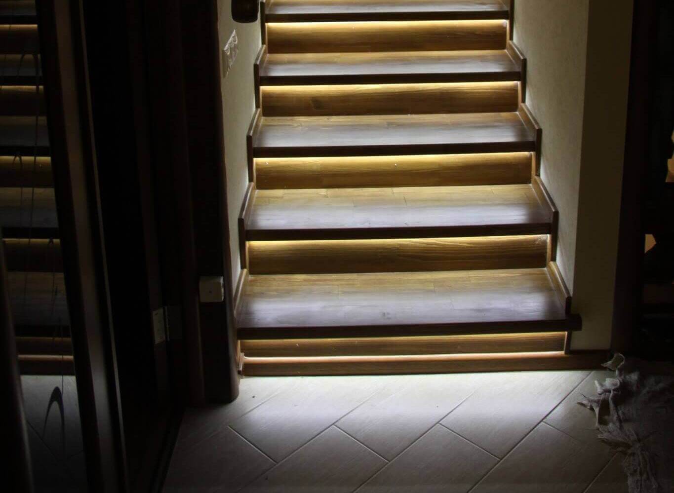 - Увеличить яркость свечения тусклых светильников можно, расположив их максимально по длине каждой проступи.