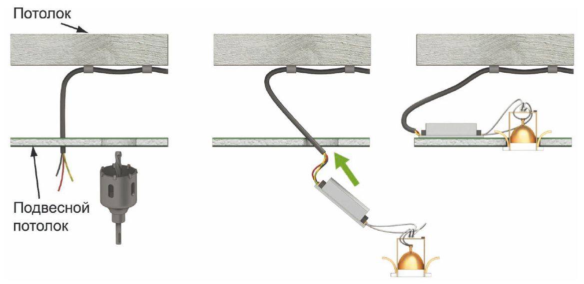 - Установка закладных под светильники и, собственно, их монтаж – это два;