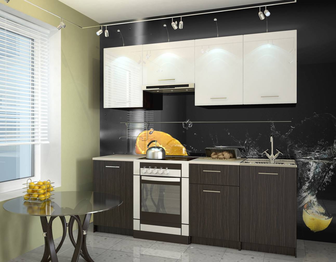 Можно сделать узкую кухню визуально шире, сделать освещенную “полосу” вдоль одной из стен, избавившись от “фонового” источника света.
