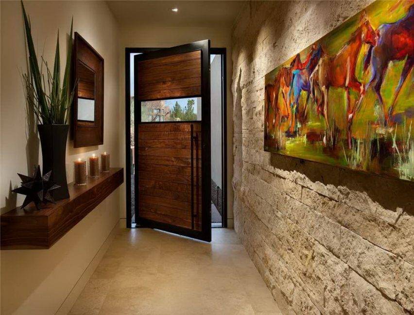 - декоративное, оно украсит помещение, подчеркнет некоторые интересные элементы и позволит даже зрительно сделать прихожую более просторной.