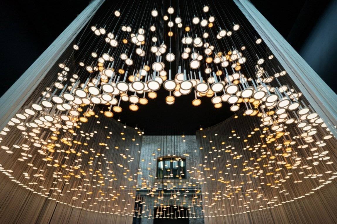 Более интересная альтернатива – несколько подвесных потолочных светильников поменьше. Они могут определять разные зоны или создавать единую композицию. А в лофтовых и гранжевых интерьерах популярны реечные подвесные светильники, которые располагаются сразу серией.