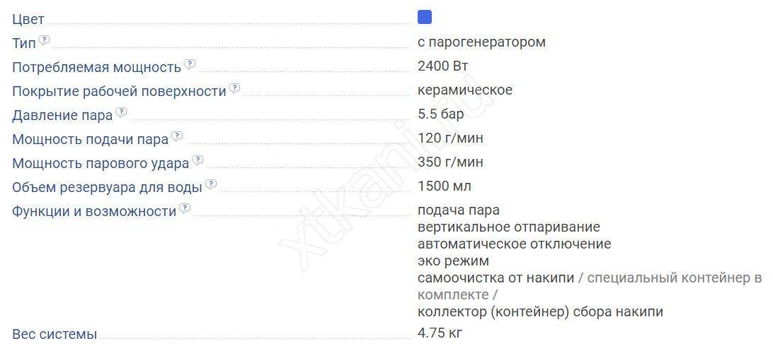 Пар подается под давлением 5,5 бар постоянно, подача регулируется техникой в автоматическом режиме, есть вертикальное отпаривание. Паровой удар – удивительно мощный. *Цена от 11990 рублей.