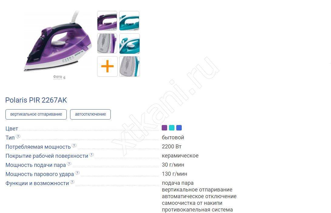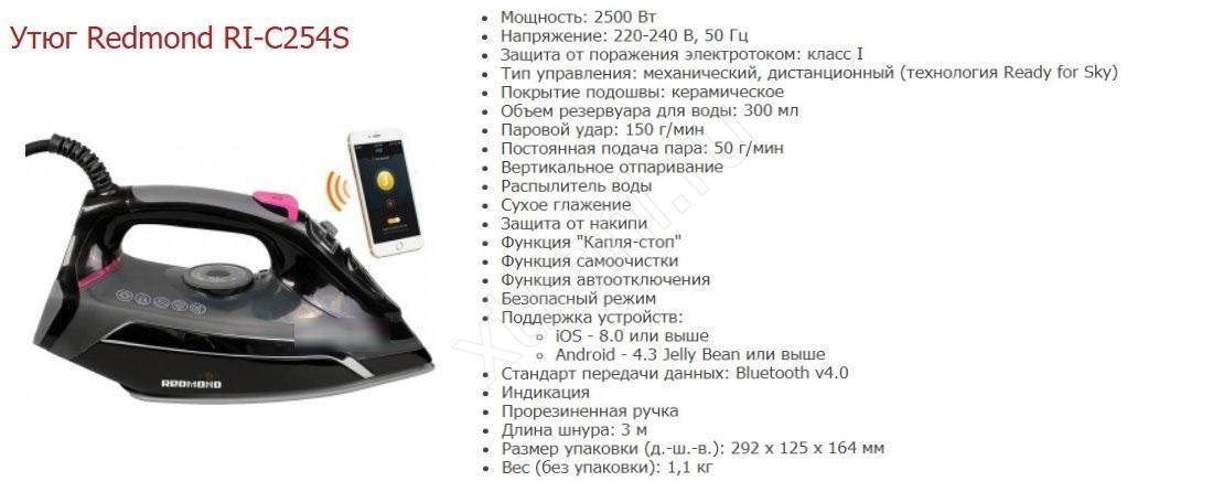 - Самостоятельно определяет тип ткани и регулирует температуру