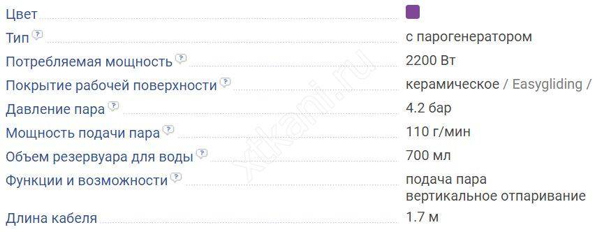 Регулировка подачи пара – ручная, длина шнура небольшая – всего 1,8 метра. Керамика оснащена покрытием Easygliding, что обеспечивает легкость скольжения.