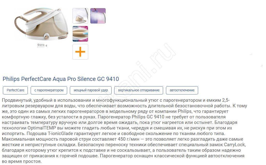 У вертикального Philips GC535/35 есть уникальная система придания одежде определенного аромата – cleartouch essence. С помощью специальных капсул для парфюма можно освежить одежду без стирки и придать ей приятный аромат. В остальном у Philips GC535/35 средние для отпаривателя показатели: время нагрева воды – 60 сек, мощность – 2000 Вт, объем бака для воды – 1,2 л. В комплекте есть телескопическая стойка и насадка зажим. По отзывам пользователей Philips GC535/35 очень удобно пользоваться, отлично отпаривает костюмы, обладает классным дизайном. Многим нравится функция ароматизации. А вот претензии поступают как всегда к длине сетевого шнура. Каких-либо отзывов, касающихся преждевременных поломок отпаривателей Philips и частых обращений по гарантии, не обнаружено.