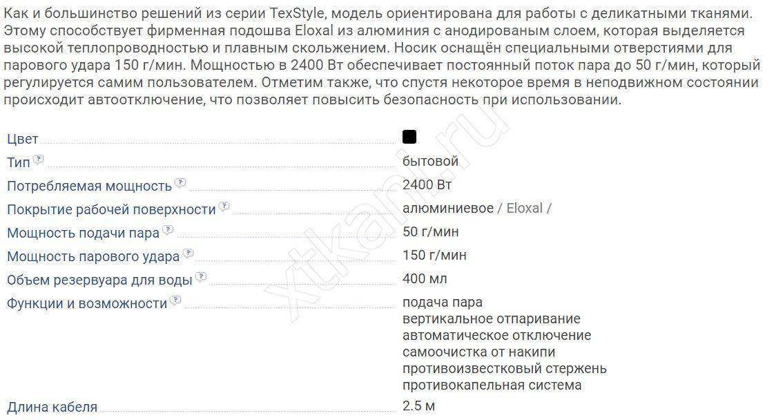 Утюг мощностью 3 кВт позволяет одинаково хорошо разглаживать как жёсткие льняные ткани, так и деликатный шифон. Зауженная форма носика помогает проходить труднодоступные места: манжеты, оборки, рюши. Специальная насадка на подошву позволяет разогревать утюг до максимума и гладить тонкие вещи, используя интенсивное отпаривание. Эргономичная ручка прорезинена специальным вставками, обеспечивающими надёжный захват. Утюг оснащён удобным переключателем режимов, который позволяет выставить нужную температуру одним движением пальца. Отверстие для заливки размера XL даёт возможность заливать воду в резервуар прямо из-под крана.