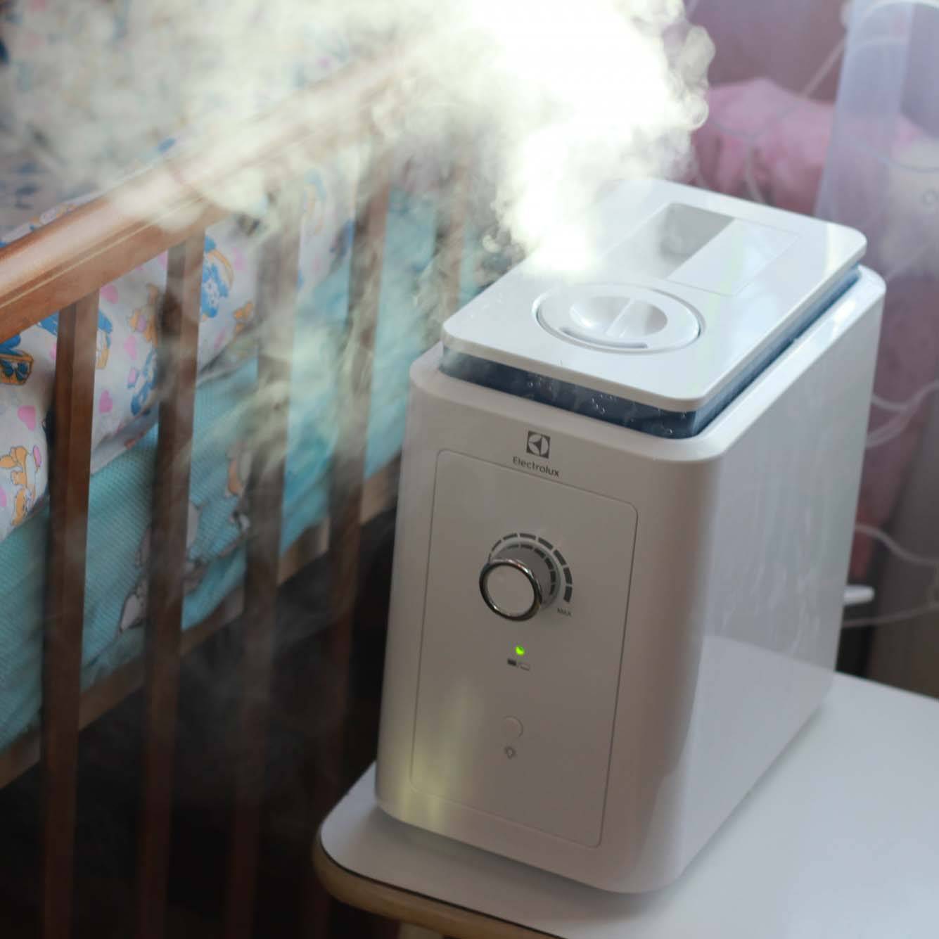 Одной из причин плохого самочувствия ребенка может быть пересушенный воздух в квартире. Климатический девайс быстро поднимает показатели влажности до нормального уровня. В результате ребенок начинает лучше спать, перестает кашлять, у него гораздо реже появляются аллергические реакции.