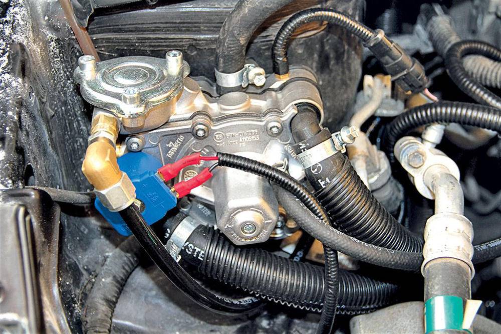 Если есть проблемы с диафрагмой (как правило, резиновой), газ направляется в охлаждающую систему, обмерзает редуктор и некоторые патрубки этой системы. Нужно заменить диафрагму.