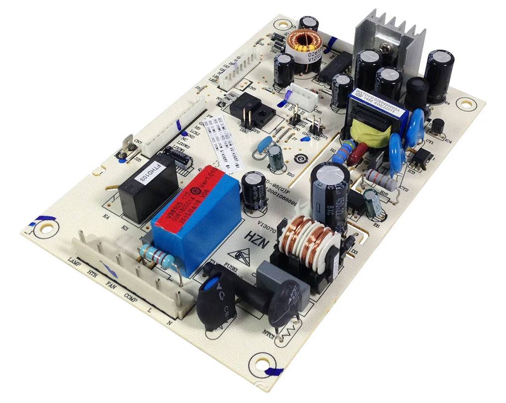 Из-за резкого скачка горят радиодетали, например, пусковой конденсатор. Поэтому холодильник не включается или мотор запускается на несколько секунд. Это самая распространённая поломка холодильника при перепадах напряжения. Нужен ремонт модуля или полная замена, в зависимости от объёма повреждений платы.